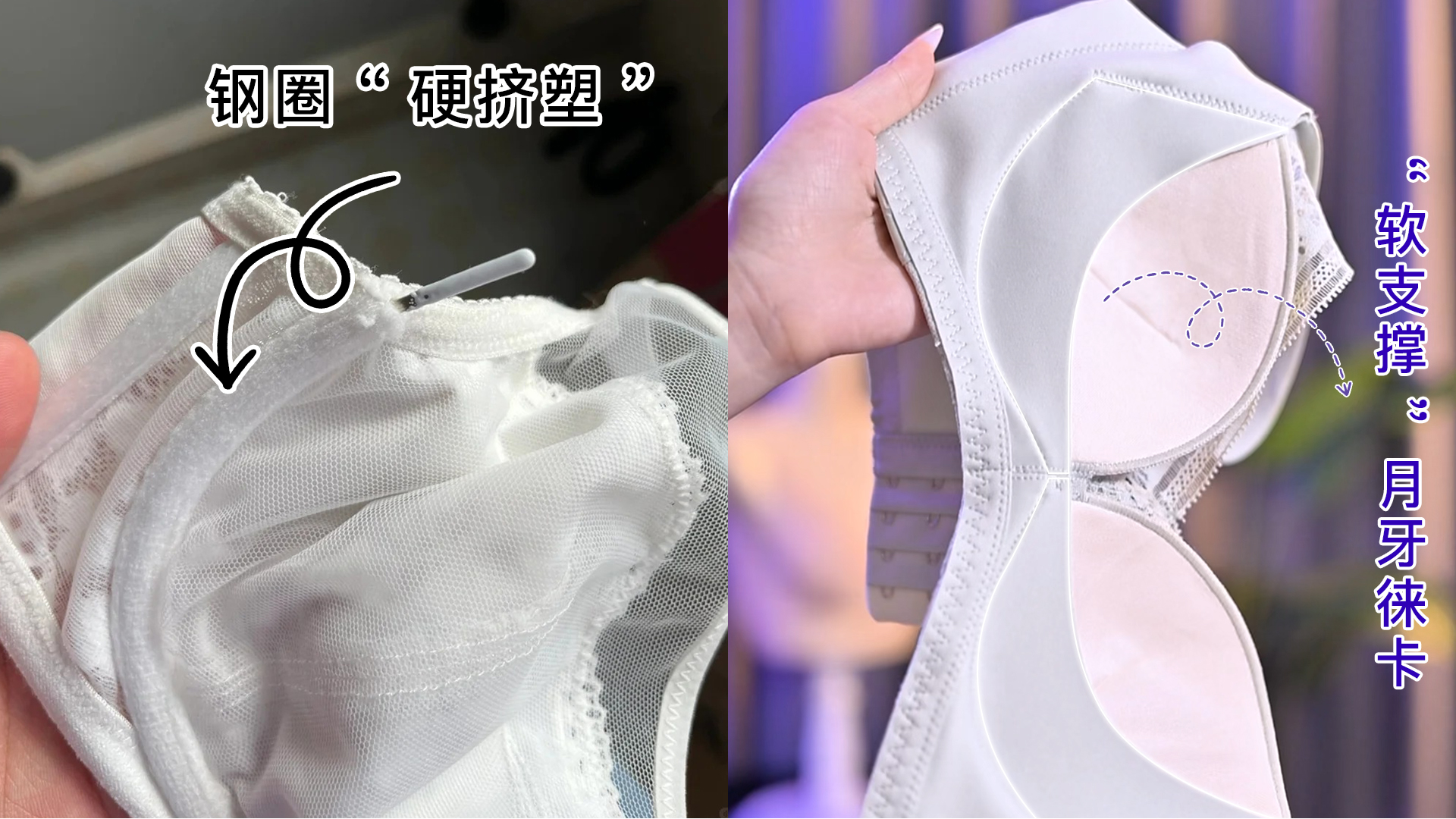 | 压迫感 | 全天穿着无压迫感 | 留下深勒痕,感到胸闷 |