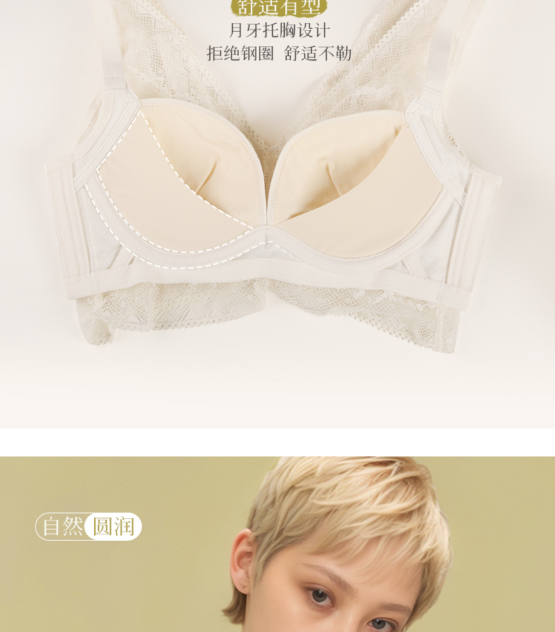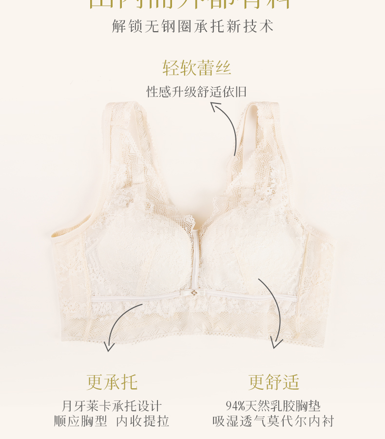 爱优体天然乳胶贝壳杯无钢圈聚拢小胸内衣不空杯不移位裸感文胸