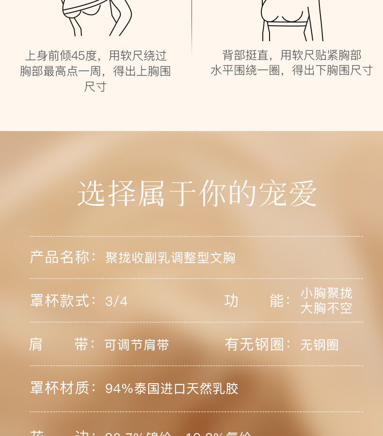 泰国天然乳胶文胸小胸聚拢显大内衣桑蚕真丝内杯四排扣调整型胸罩