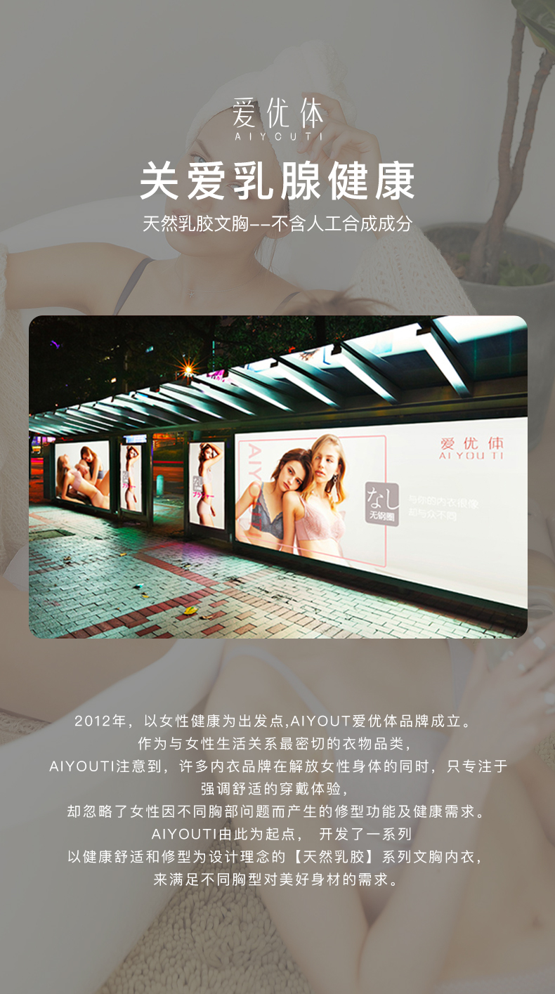 爱优体泰国天然乳胶无钢圈舒适内衣小胸聚拢收副乳调整型真丝文胸