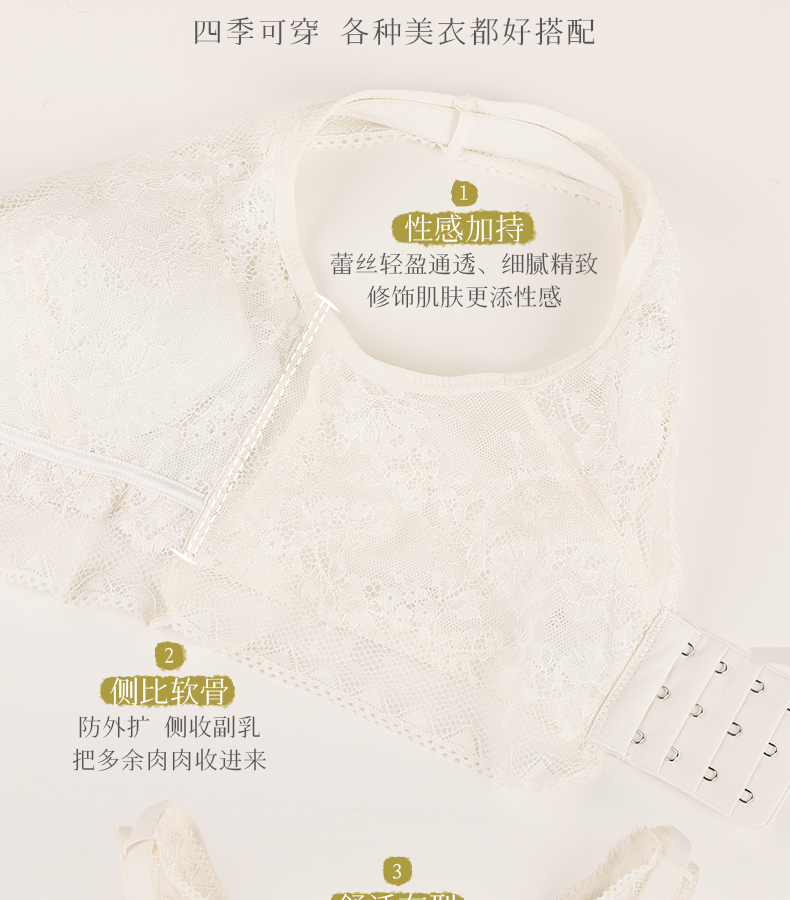 爱优体蕾丝天然乳胶罩杯胸罩小胸聚拢大胸显瘦防外扩收副乳不空杯