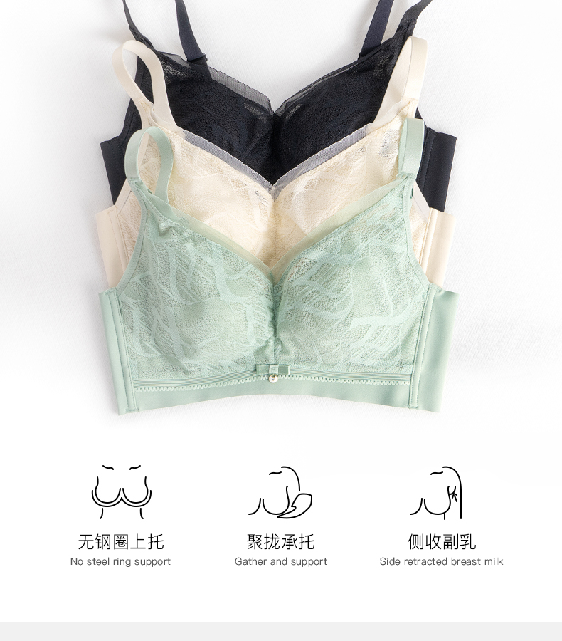 爱优体蕾丝天然乳胶罩杯胸罩小胸聚拢大胸显瘦防外扩收副乳不空杯