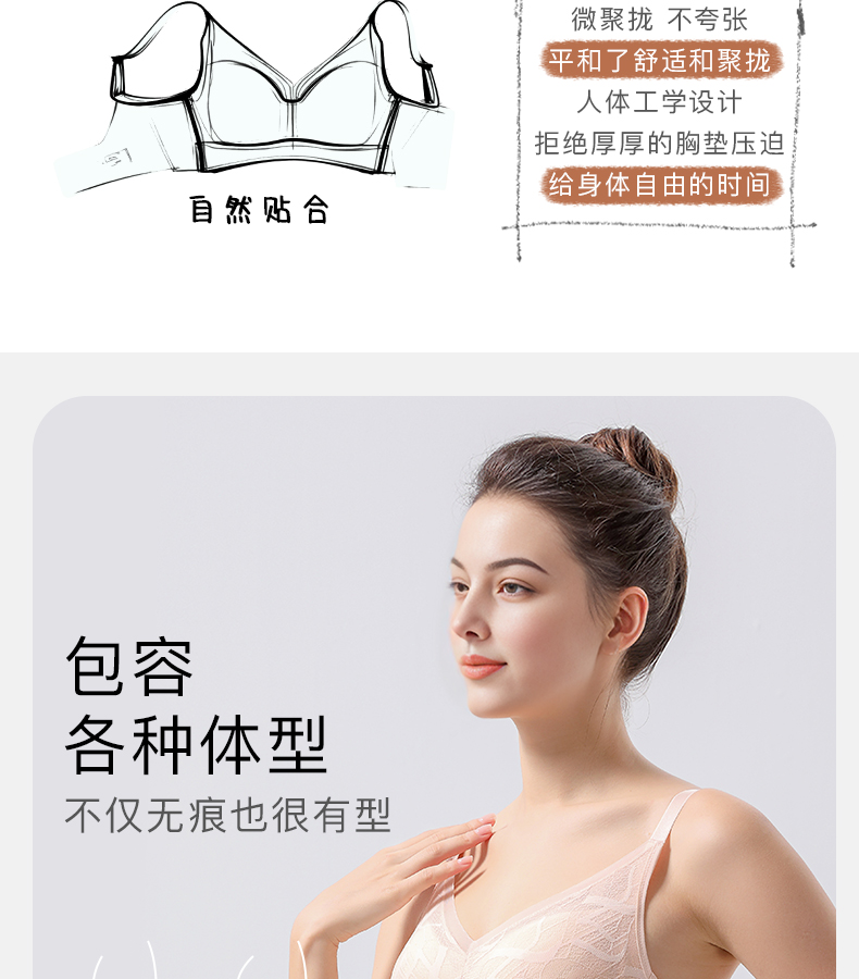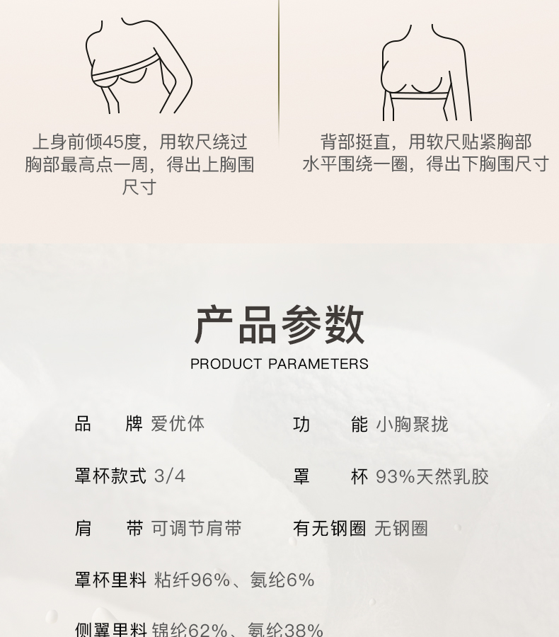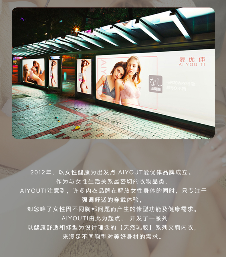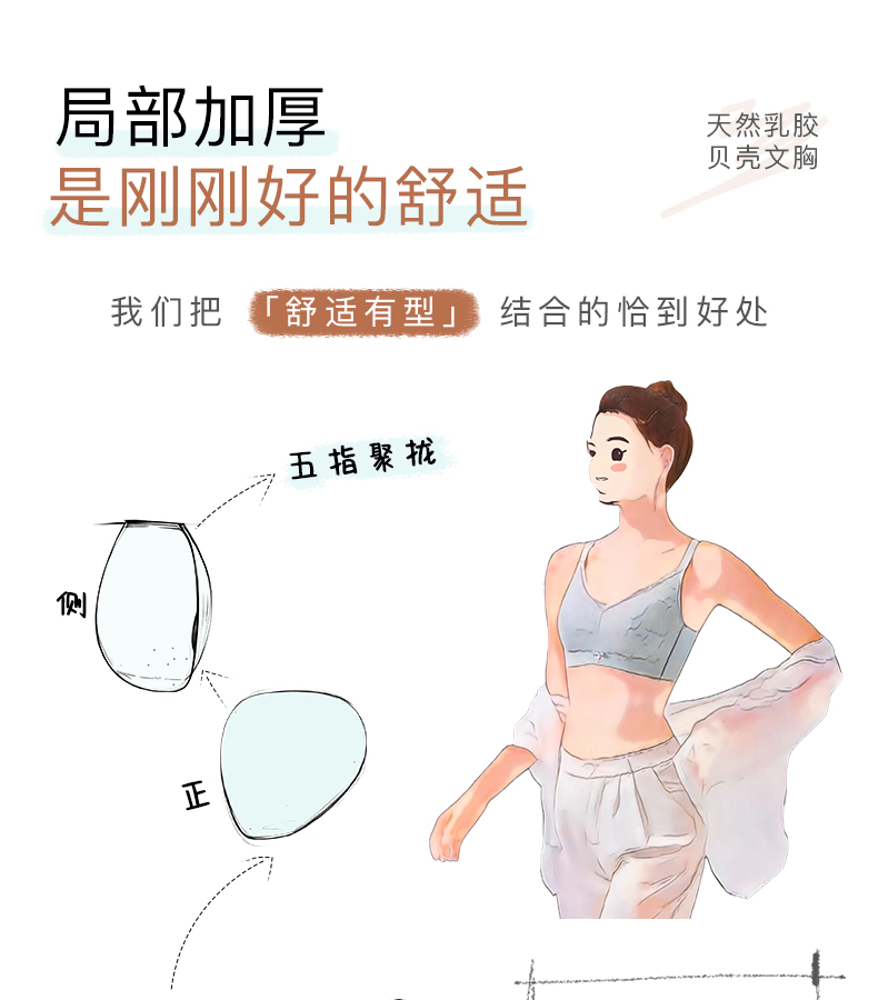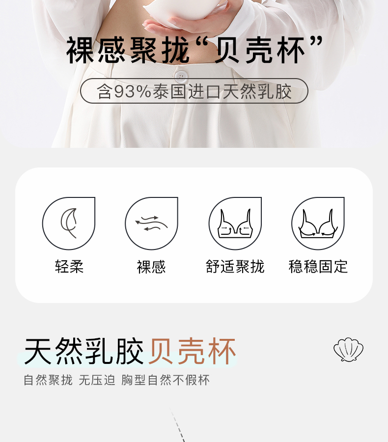 爱优体天然乳胶贝壳杯无钢圈聚拢小胸内衣不空杯不移位裸感文胸